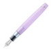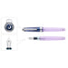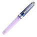 万年筆は、静かな夜のはじまりを感じさせるクリアネイビーの蓋と神秘的な淡いトーンのパープルのボディとを組み合わせました。蓋栓飾りは月と星、ペン先は夢にちなんだバクをあしらっています。