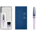 ギフトボックスも“夢宵”を連想させるシックなパープルカラーでまとめています。まだ目覚めの記憶が残る夢うつつの中、宵のひとときを楽しんでいただける幻想的なステーショナリーセットです。
