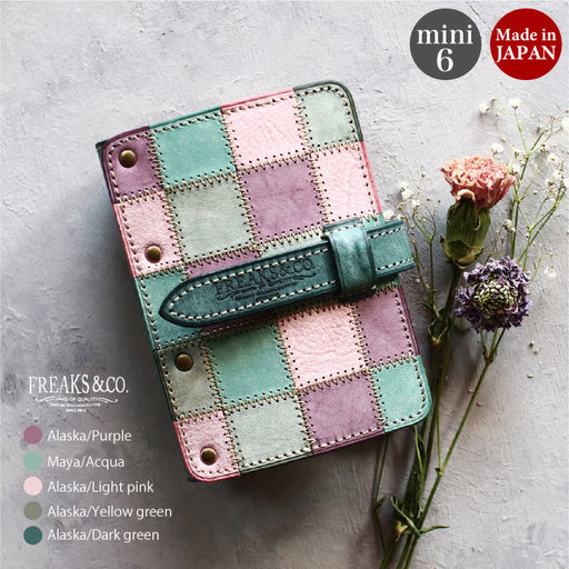 手のひらに収まる、ミニ6サイズのシステム手帳です。 グリーンシャルトリューズ、ブルーベリーウォッカ、ピンクグレープフルーツジュースを合わせたカクテルをイメージしたカラーです。 幻想的な雰囲気をお楽しみいただけます。 Freaks&co. 革小物作成ブランド。元テキスタイルデザイナ...