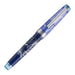 万年筆は、海の深さを連想させるネイビーのボディ全体に、儚く光るクラゲをクリアパープルの蓋で表現。