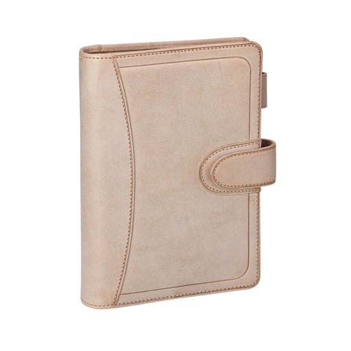 キルティングを施し強度と軽さを備えたレザーを使用したシステム手帳です。 2枚の革の間に中綿を挟み、何本ものステッチで縫製して固定することで、より丈夫で型崩れしにくくなっています。 コンパクトながら可動式ペンホルダー付きで直径最大15mmまでのペンを保持できます。