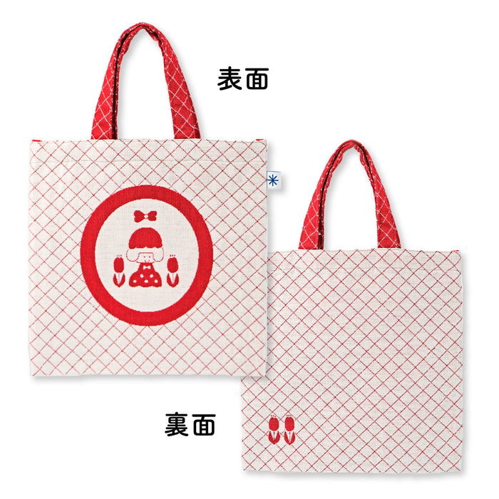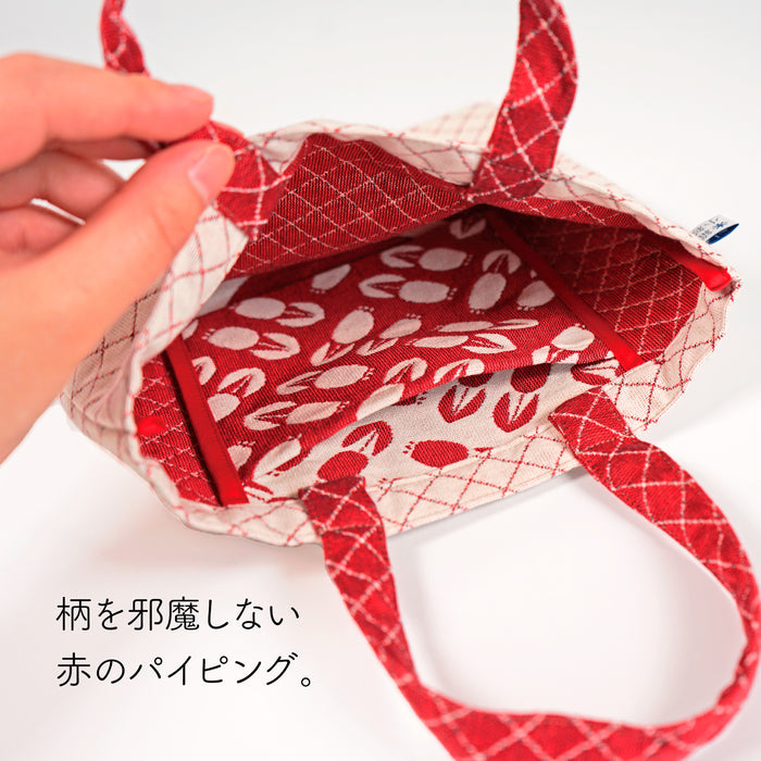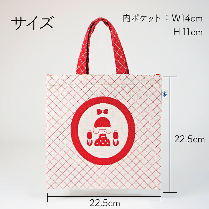 イラストレーター・mizutamaさんのイラストを米織で表現したフラットバッグです。