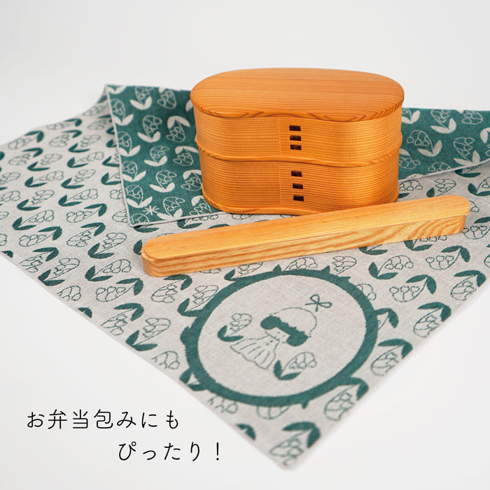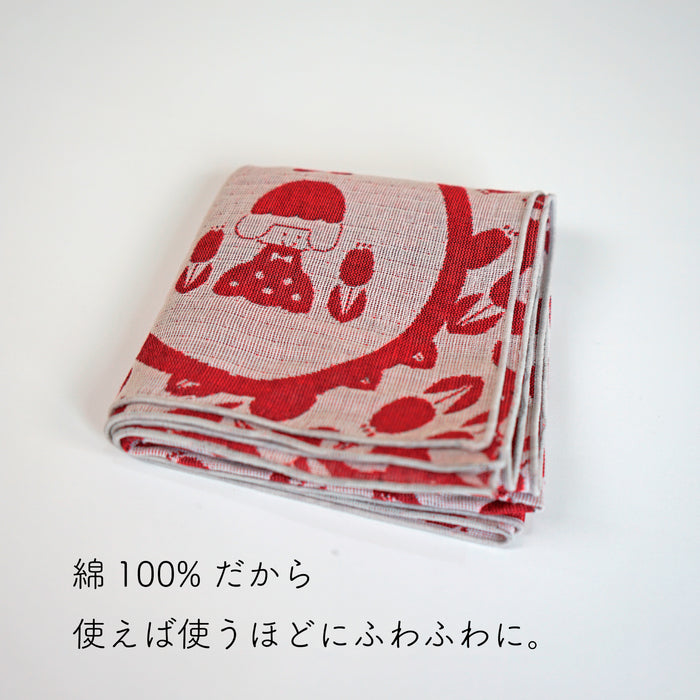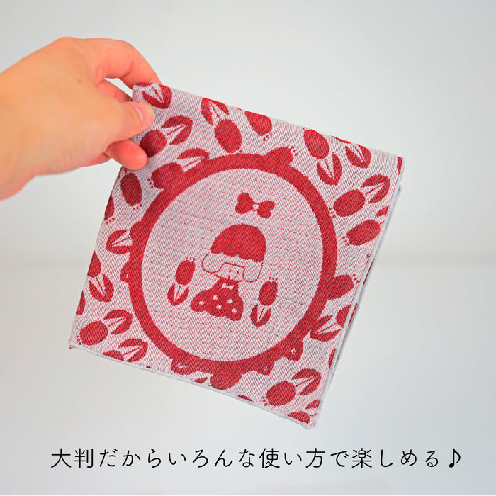 イラストレーター・mizutamaさんのイラストを米織で表現した大判はんかちです。