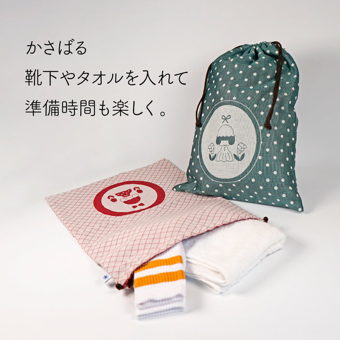 イラストレーター・mizutamaさんのイラストを米織で表現したトラベル巾着です。