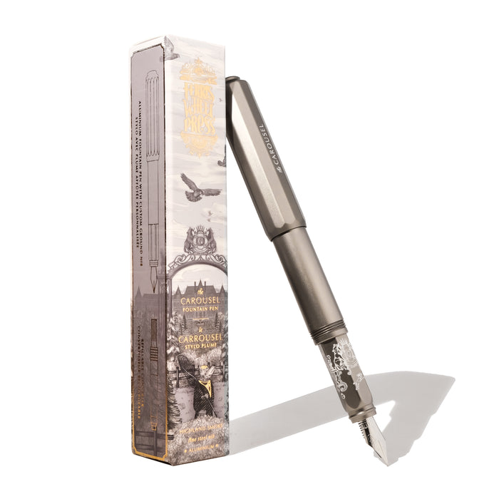スチール製ペン先には、モチーフとなった回転木馬が刻印されています。