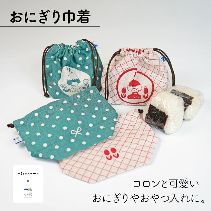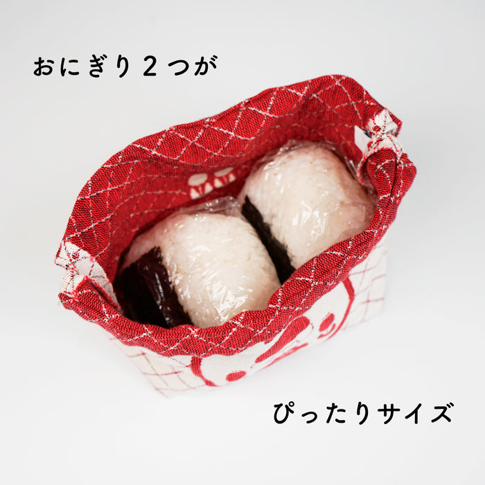 イラストレーター・mizutamaさんのイラストを米織で表現したおにぎり巾着です。