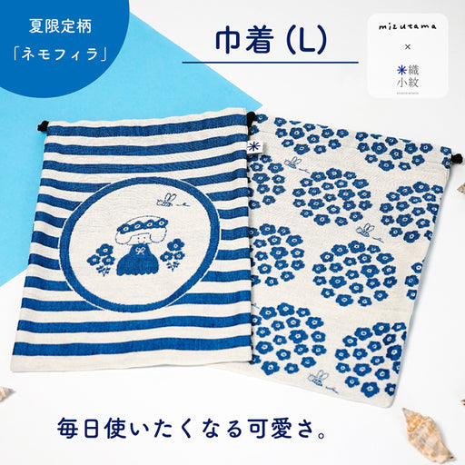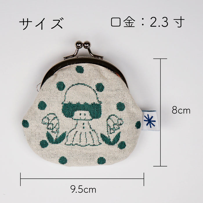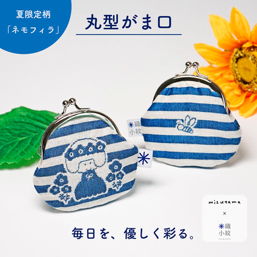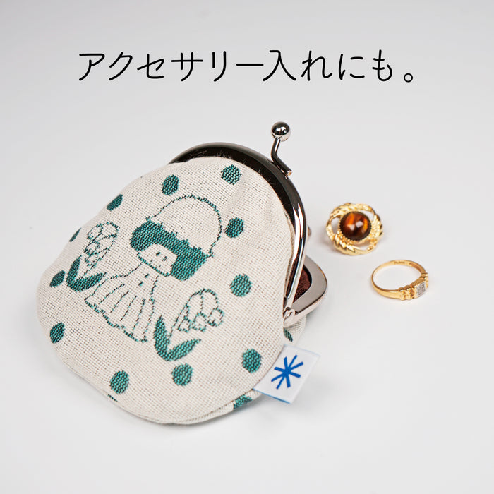イラストレーター・mizutamaさんのイラストを米織で表現した丸型がま口です。